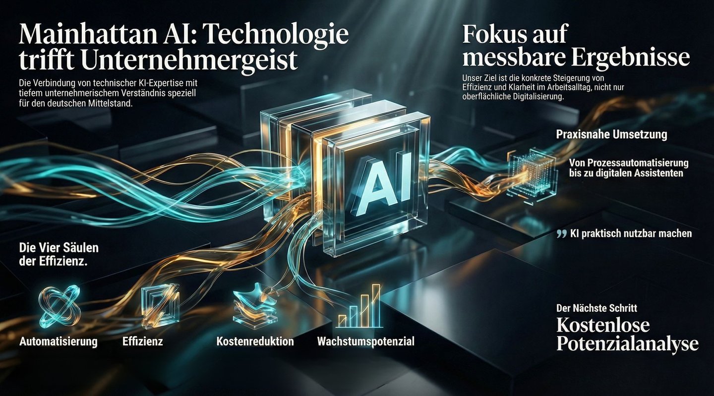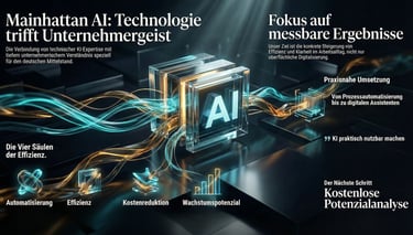 Mainhattan AI Solutions steigert die Effizienz Ihres Unternehmens – durch Prozessautomatisierungen, digitale Assistenten , praxisnahe Workshops und smarten KI Starter-Paketen für KMU's.