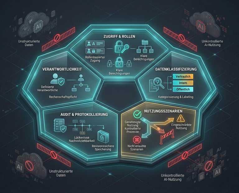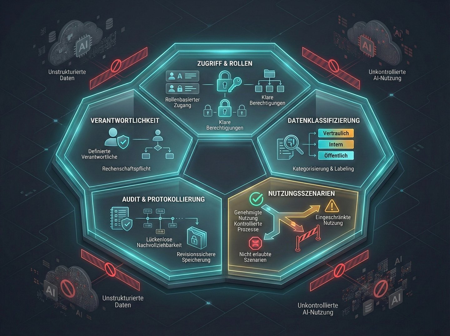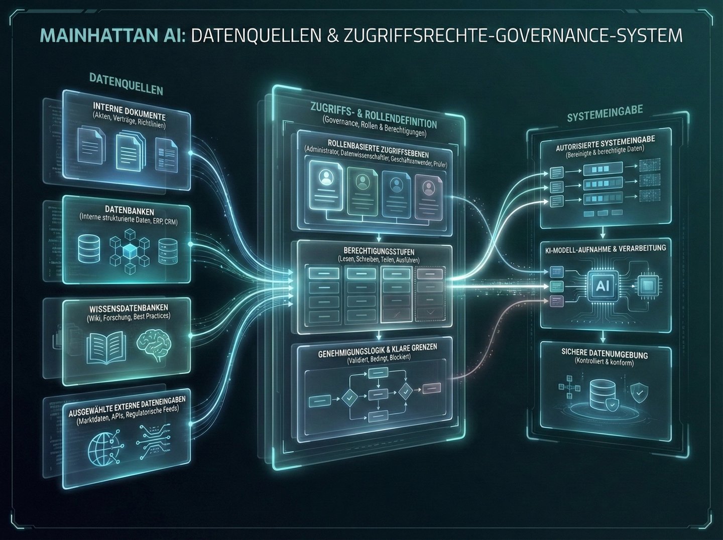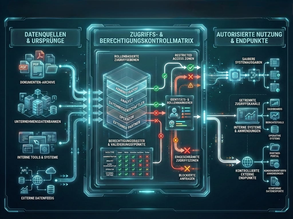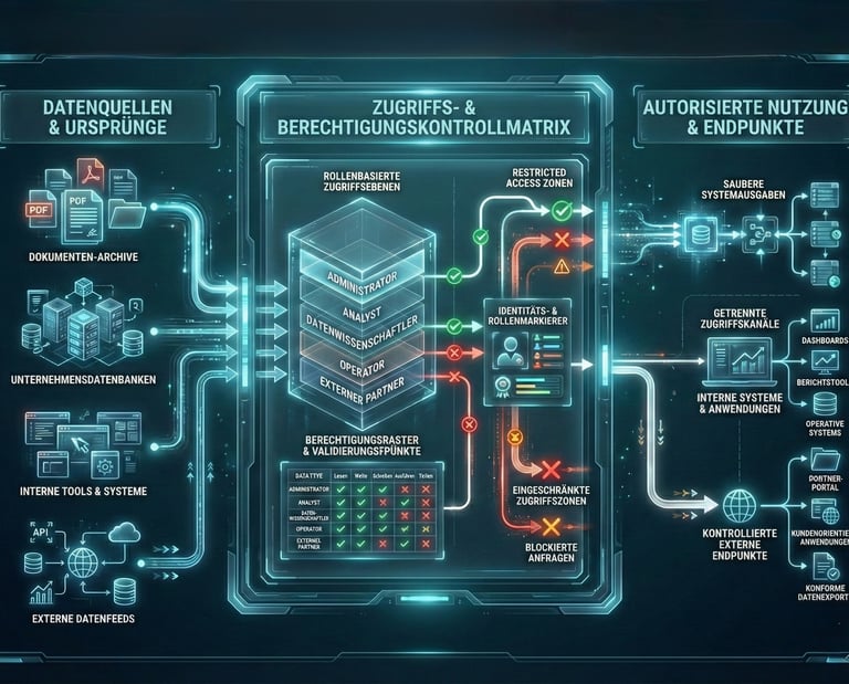 Wir prüfen Datenquellen, Zugriffsrechte und Nutzungsszenarien für eine sichere und DSGVO konforme Umsetzung.