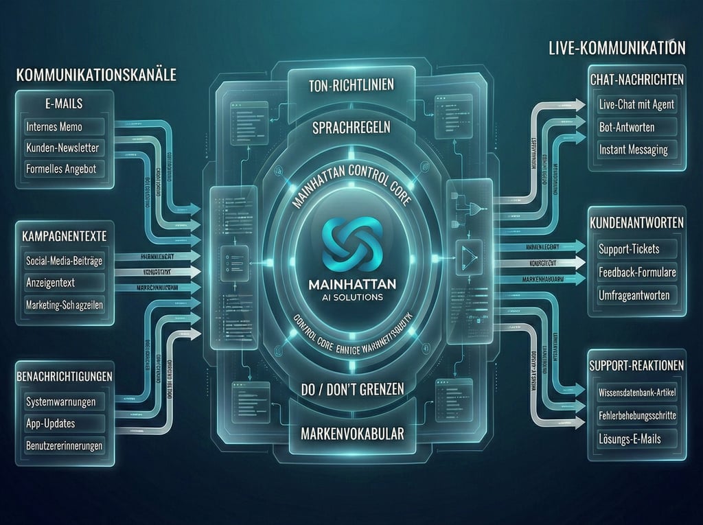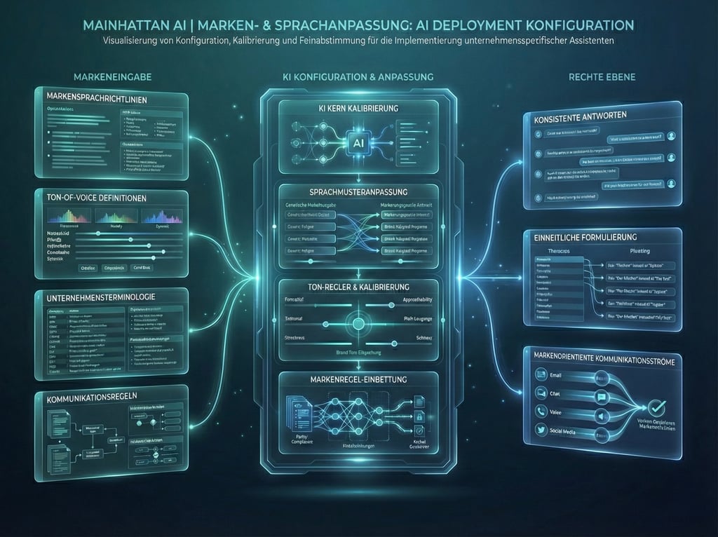Sprache, Auftreten und Antwortstil werden an Ihre Marke angepasst, damit der Assistent konsistent, professionell und vertrauenswürdig kommuniziert.