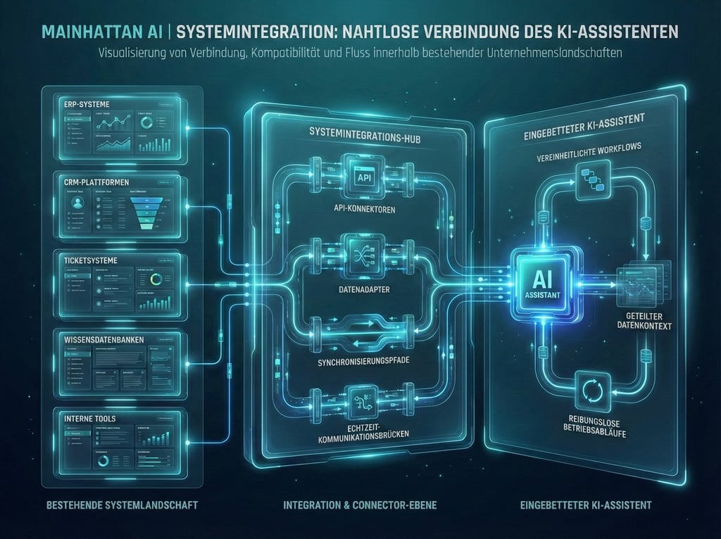 Der Assistent wird direkt in Ihre bestehenden Tools integriert und arbeitet dort, wo Ihre Teams täglich tätig sind.