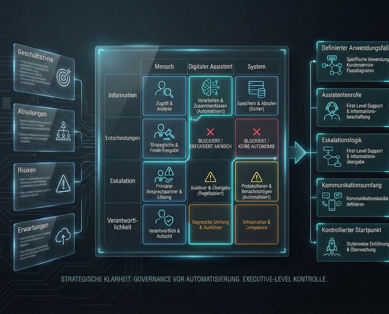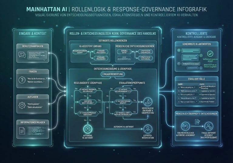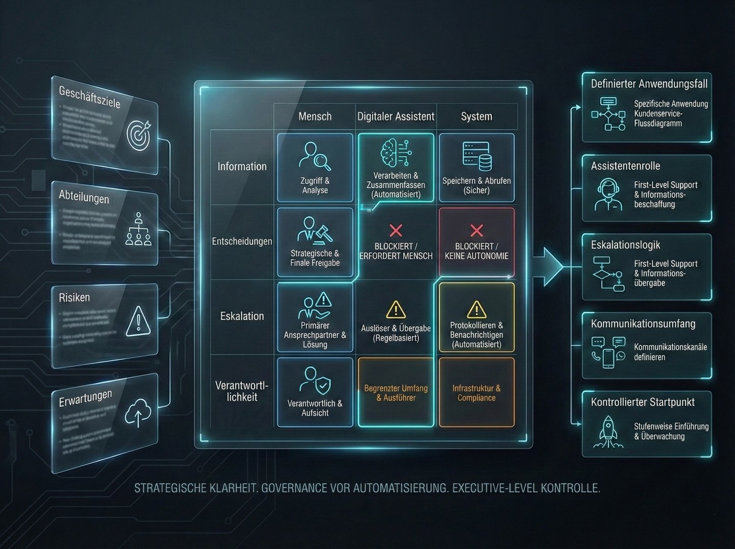 Der Assistent weiß, was er beantworten darf, wann er übergibt und wo menschliche Entscheidungen notwendig sind.