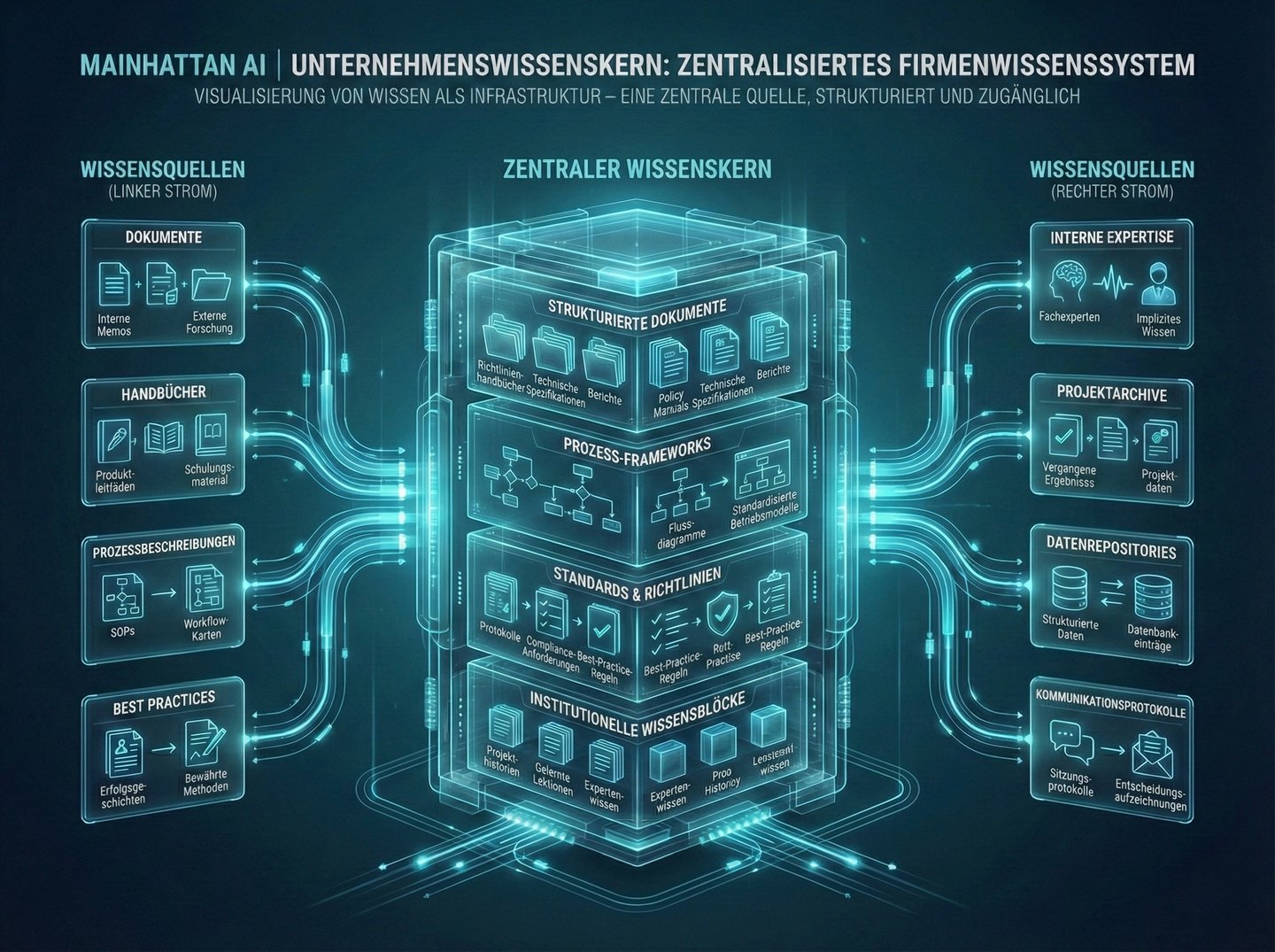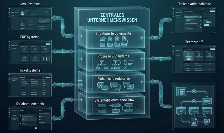 Ein zentrales KI-System, das Wissen bündelt, nutzbar macht und dauerhaft im Unternehmen hält.