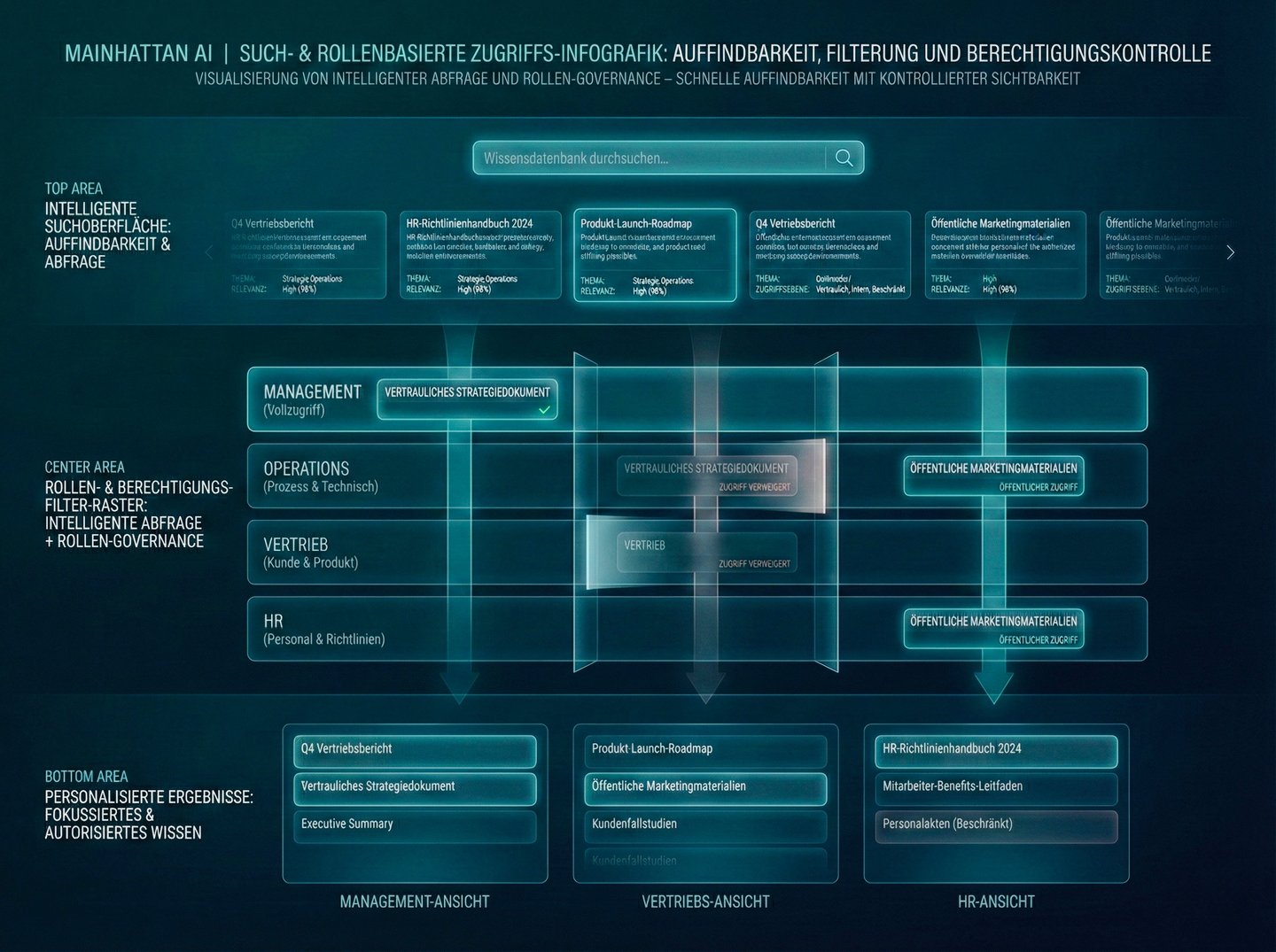 Mitarbeitende erhalten genau die Informationen, die sie benötigen. Zugriffe erfolgen rollenbasiert, kontrolliert und DSGVO-konform.