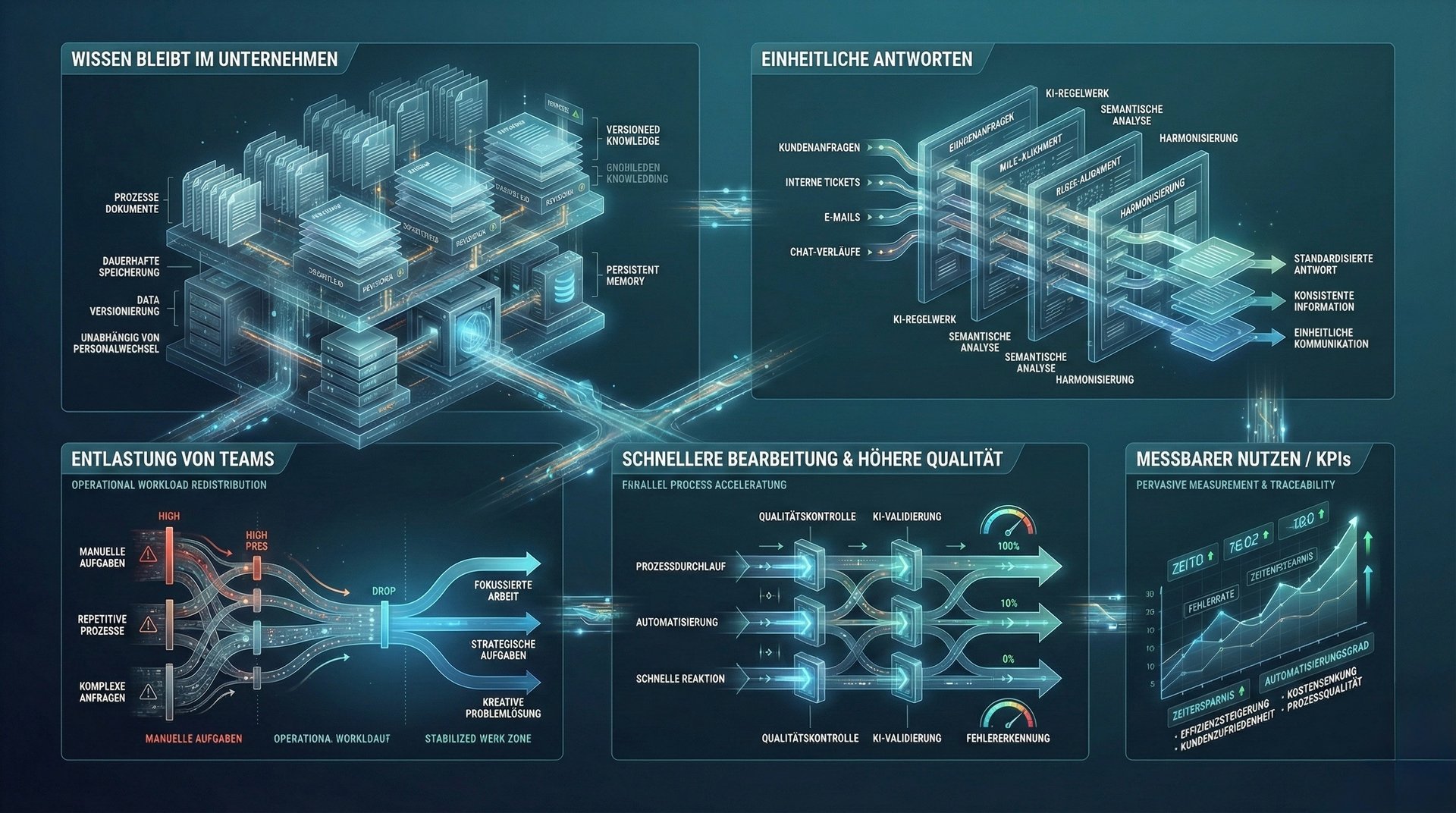 Wissen zentral speichern, konsistente Antworten sichern, besser skalieren.