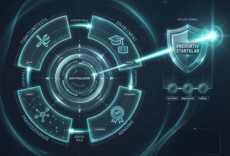 Wir testen reale Anwendungsfälle, schulen Ihr Team und stellen einen produktiven Start sicher.