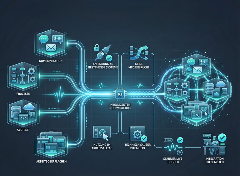 Der Assistent wird technisch umgesetzt, an bestehende Systeme angebunden und in den Arbeitsalltag integriert.