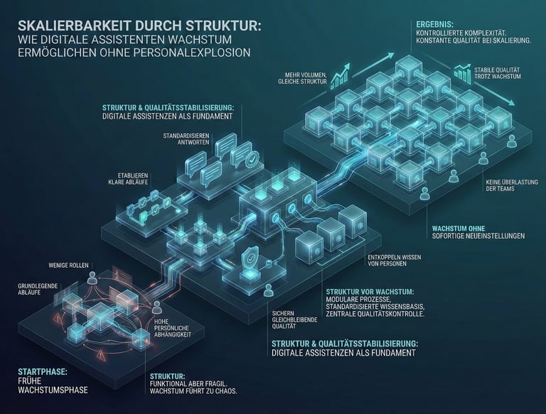 Digitale Assistenten schaffen von Anfang an klare Strukturen, halten Qualität konstant und ermöglichen Wachstum, ohne dass sofort zusätzliche Mitarbeitende notwendig sind.