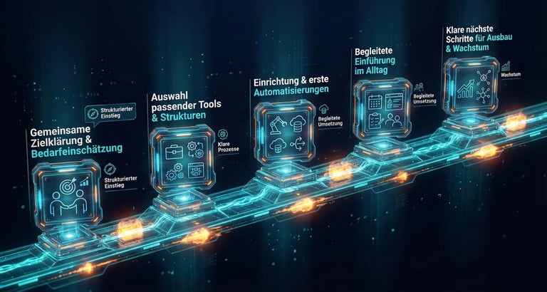 Gemeinsam definieren wir Ziele, richten die notwendigen Tools ein, bauen klare Strukturen auf und begleiten die Einführung Schritt für Schritt im Alltag.