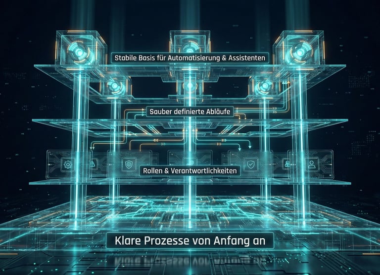 Rollen, Verantwortlichkeiten und Abläufe werden sauber definiert. So entsteht eine stabile Struktur, auf der Automatisierungen und Assistenten sinnvoll aufbauen können.
