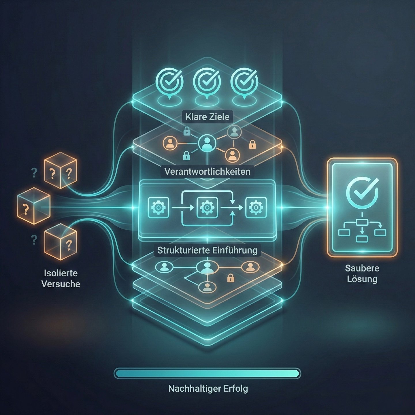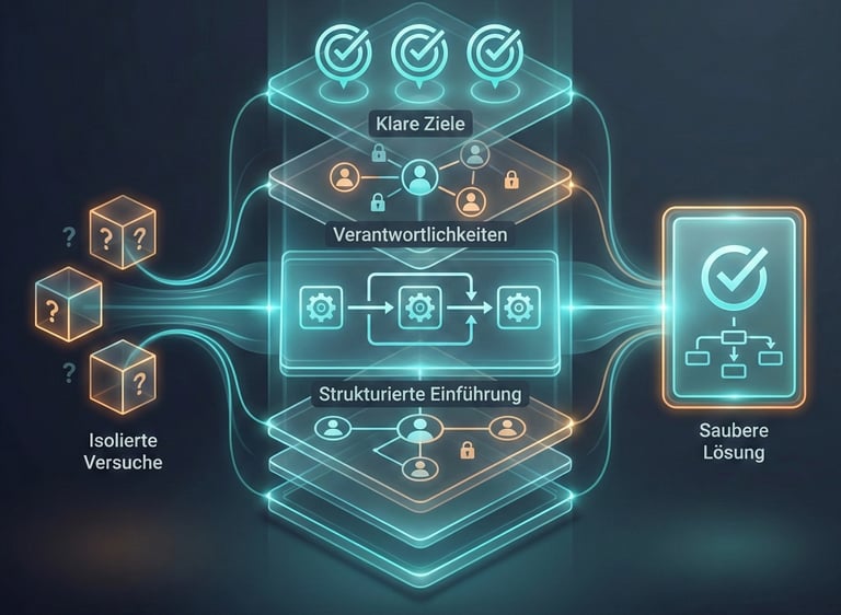 Statt unkoordinierter Tests entsteht eine saubere, durchdachte Lösung mit klaren Zielen und Verantwortlichkeiten.