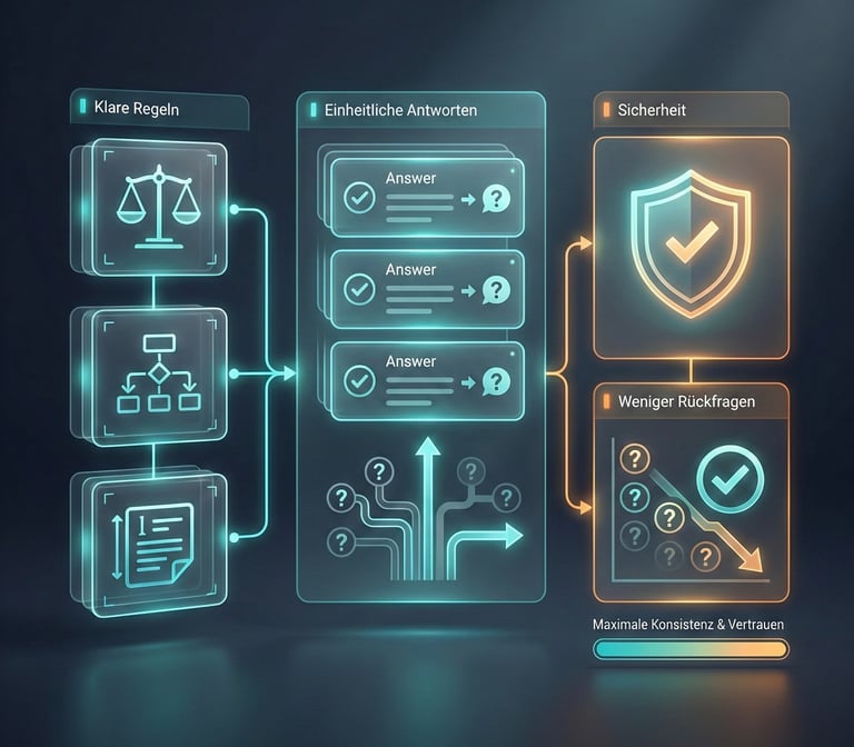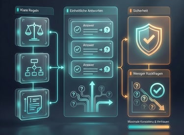 Einheitliche Antworten und klare Regeln reduzieren Rückfragen und schaffen Sicherheit im Umgang mit KI.