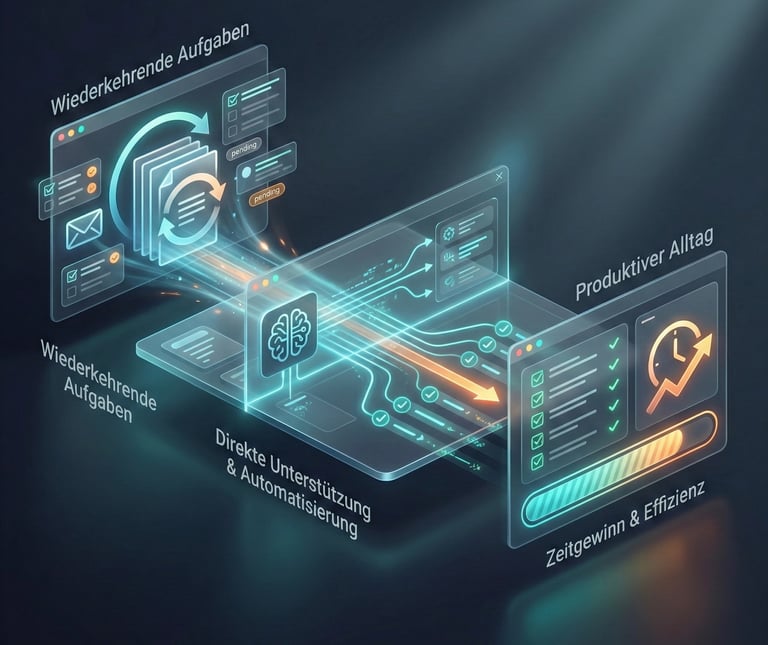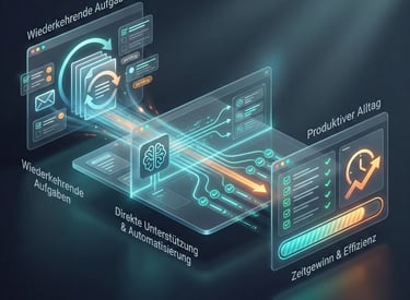 Deshalb betrachten wir typische Aufgaben aus verschiedenen Bereichen und zeigen, wo KI konkret unterstützen kann.