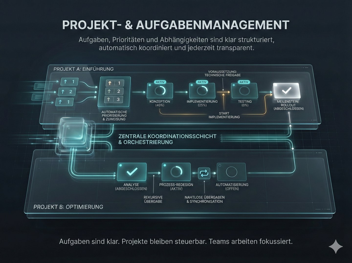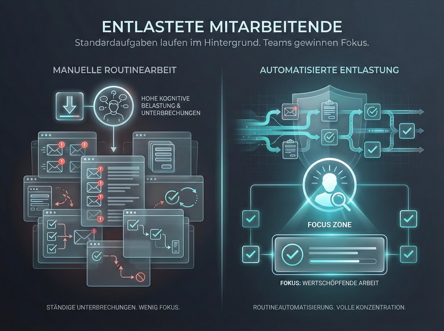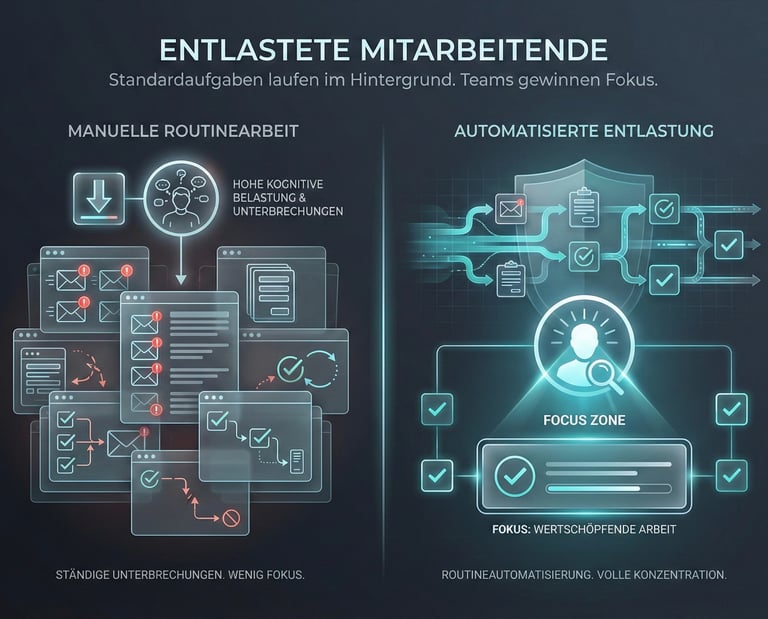 Standardaufgaben laufen im Hintergrund. Teams gewinnen Fokus.