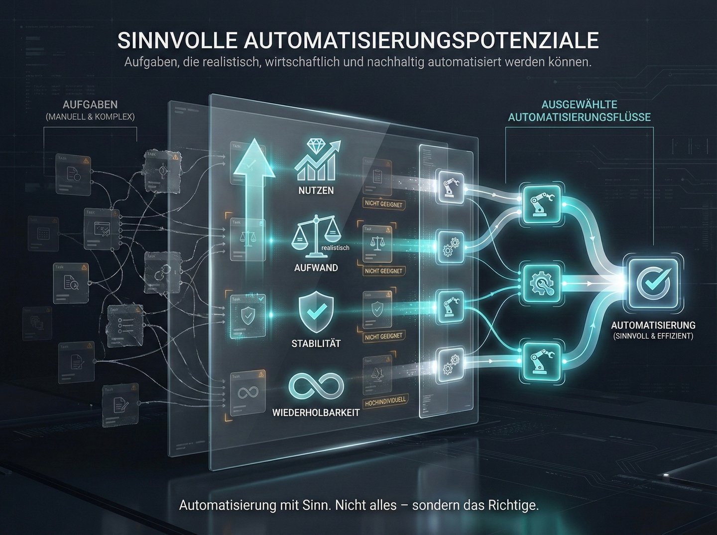Wir bewerten, welche Aufgaben sich realistisch und wirtschaftlich automatisieren lassen.