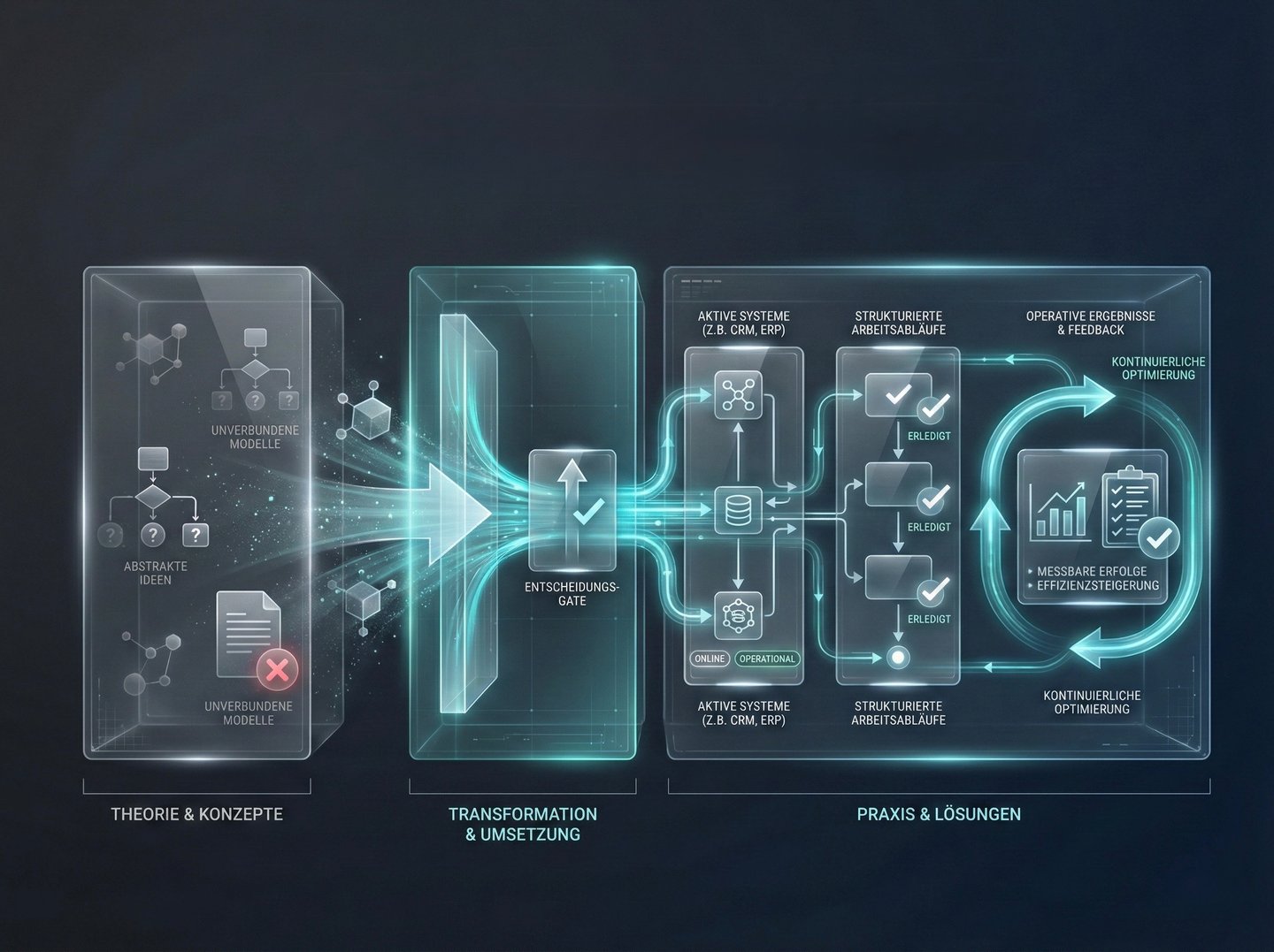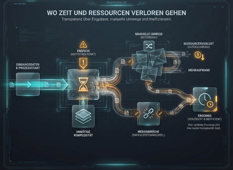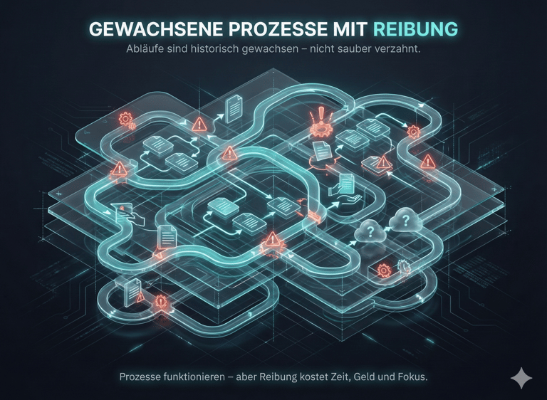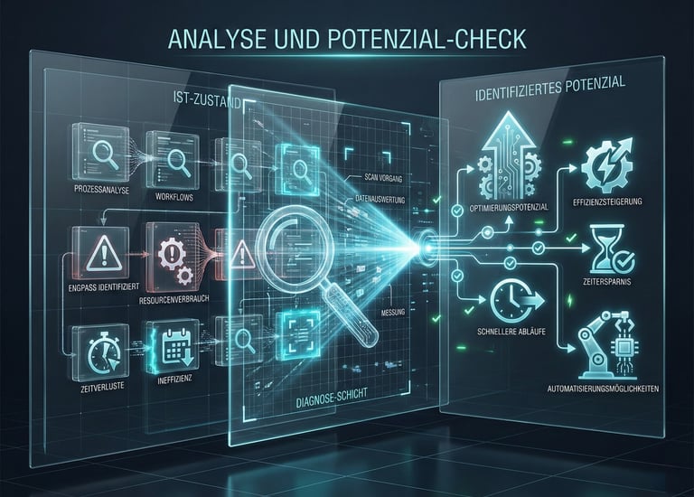 Wir analysieren bestehende Abläufe und identifizieren, wo Zeit, Ressourcen und Fokus verloren gehen.