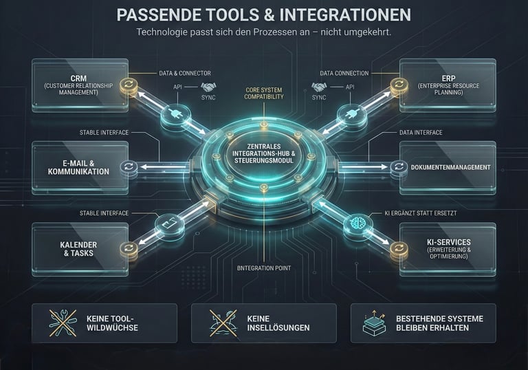 Bestehende Tools werden sinnvoll verbunden und in klare, funktionierende Prozesse überführt.