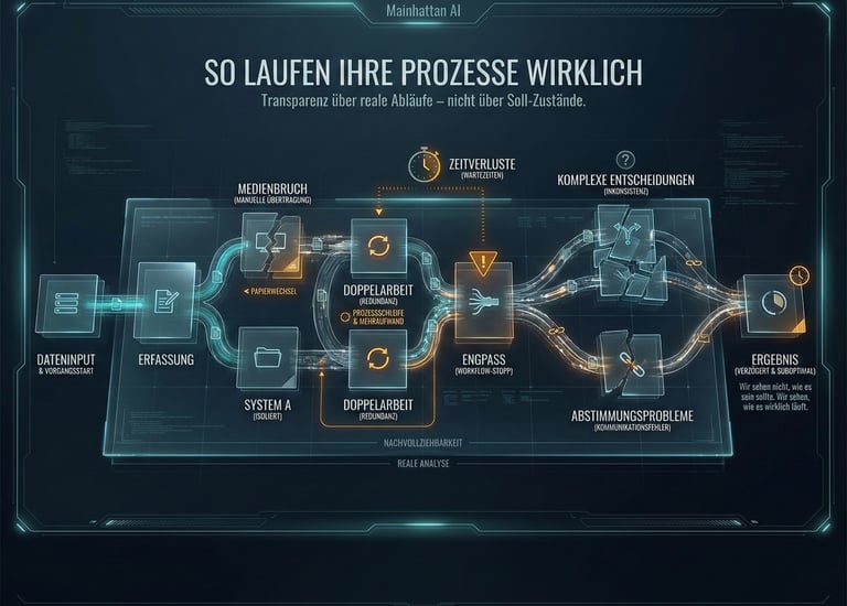 Wir schaffen Transparenz darüber, wo Prozesse heute stehen und wo echte Effizienzpotenziale liegen.