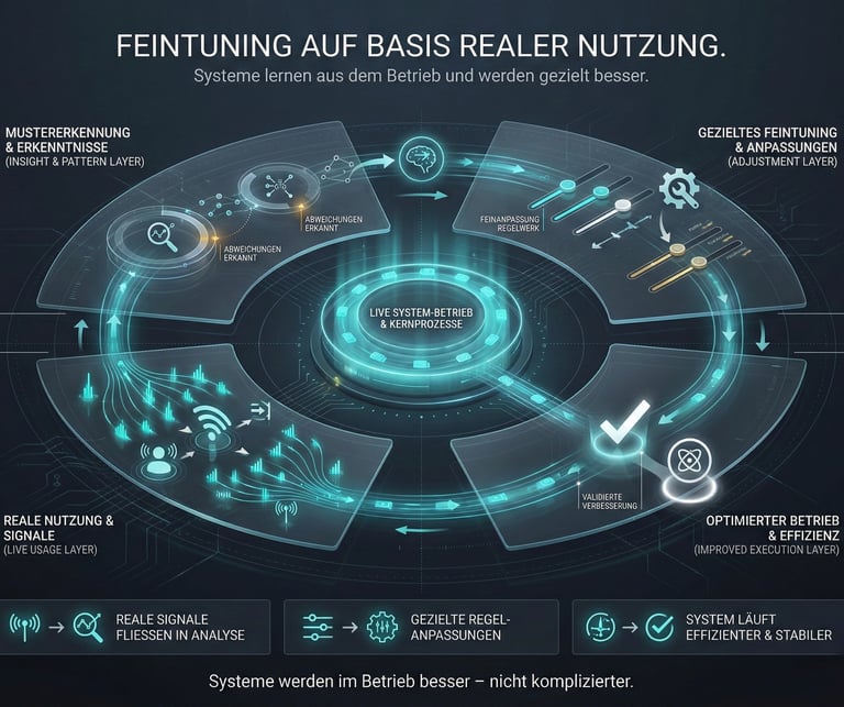Nach dem Go Live begleiten wir den Betrieb, messen Ergebnisse und optimieren kontinuierlich.