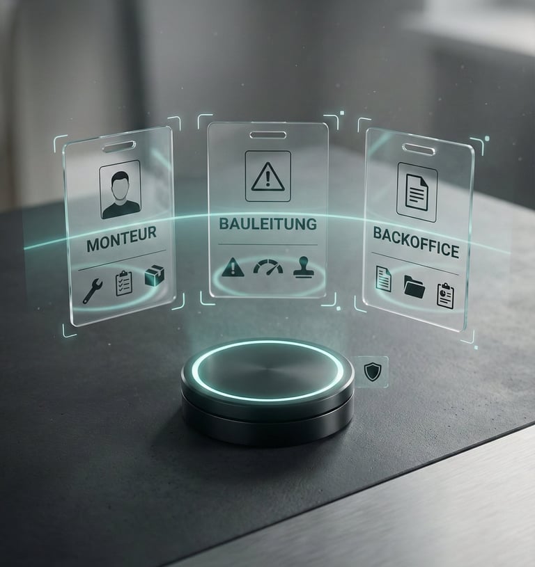 Hier sehen Sie typische Situationen, in denen der Wissensbot im Alltag Zeit spart und Fehler reduziert. Auf der Baustelle, im Service und im Büro.