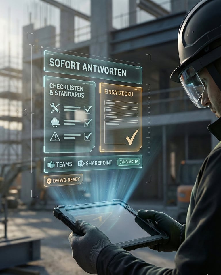 Ihr Team bekommt Antworten, Checklisten und Vorgehensweisen sofort – direkt im Einsatz, ohne ständiges Telefonieren ins Büro.