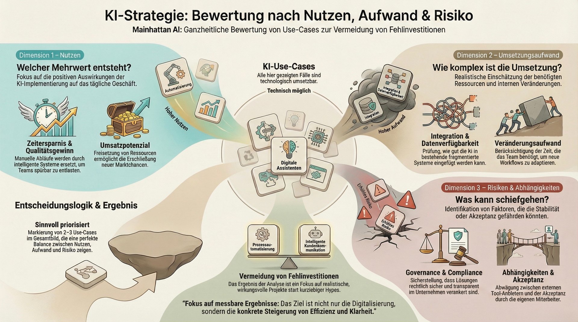 Wir analysieren, priorisieren und schaffen eine klare Entscheidungsgrundlage für den sinnvollen Einsatz von KI.