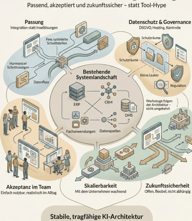 Die KI Strategieberatung schafft Klarheit darüber, wo und wie Künstliche Intelligenz im Unternehmen sinnvoll eingesetzt werden kann. Sie verhindert vorschnelle Tool Entscheidungen und sorgt für eine fundierte, realistische Grundlage für alle weiteren Schritte.