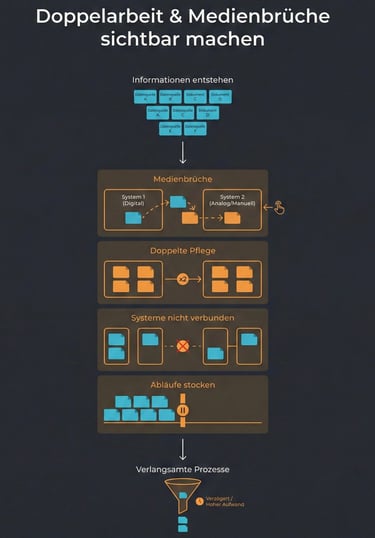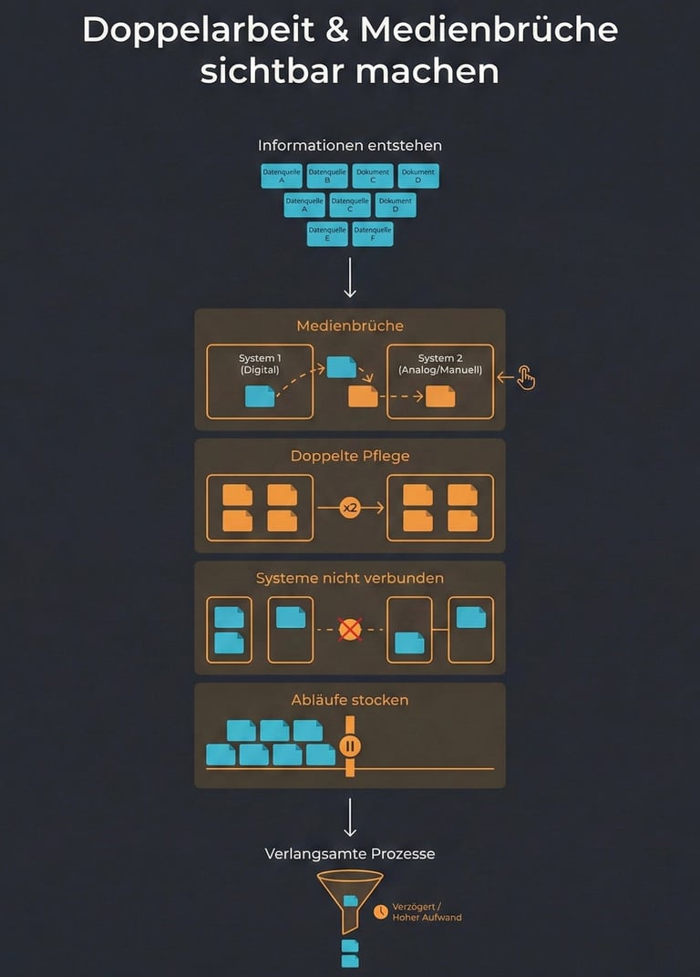 Wir analysieren Prozesse, Rollen und Engpässe, um Klarheit über sinnvolle Einsatzfelder zu schaffen.